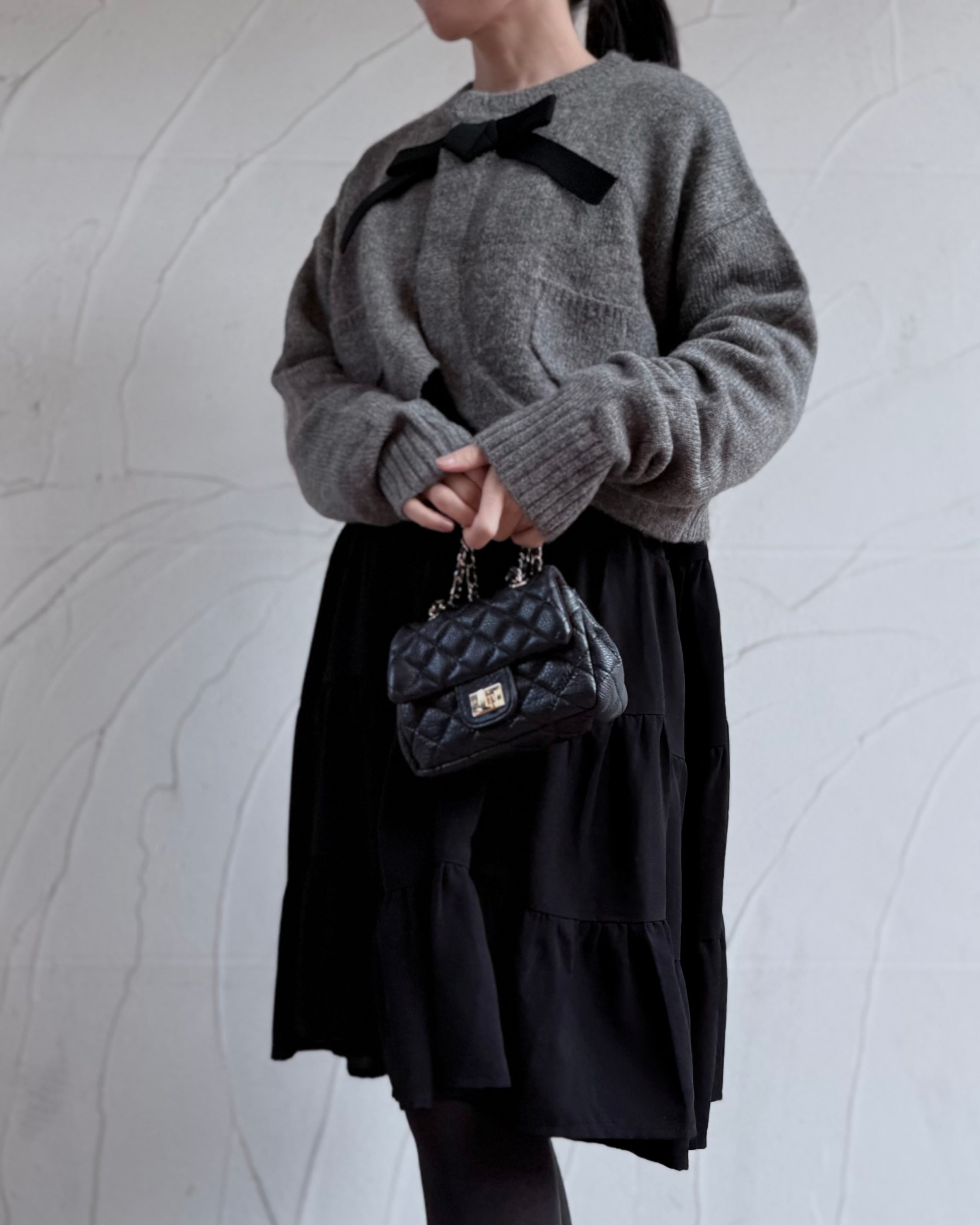 ハイウエストやボリューム感のあるボトムスやワンピースとの相性も抜群です。