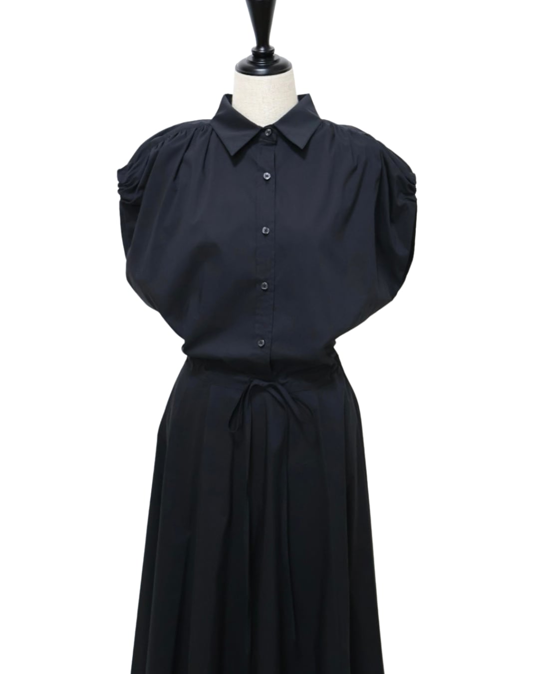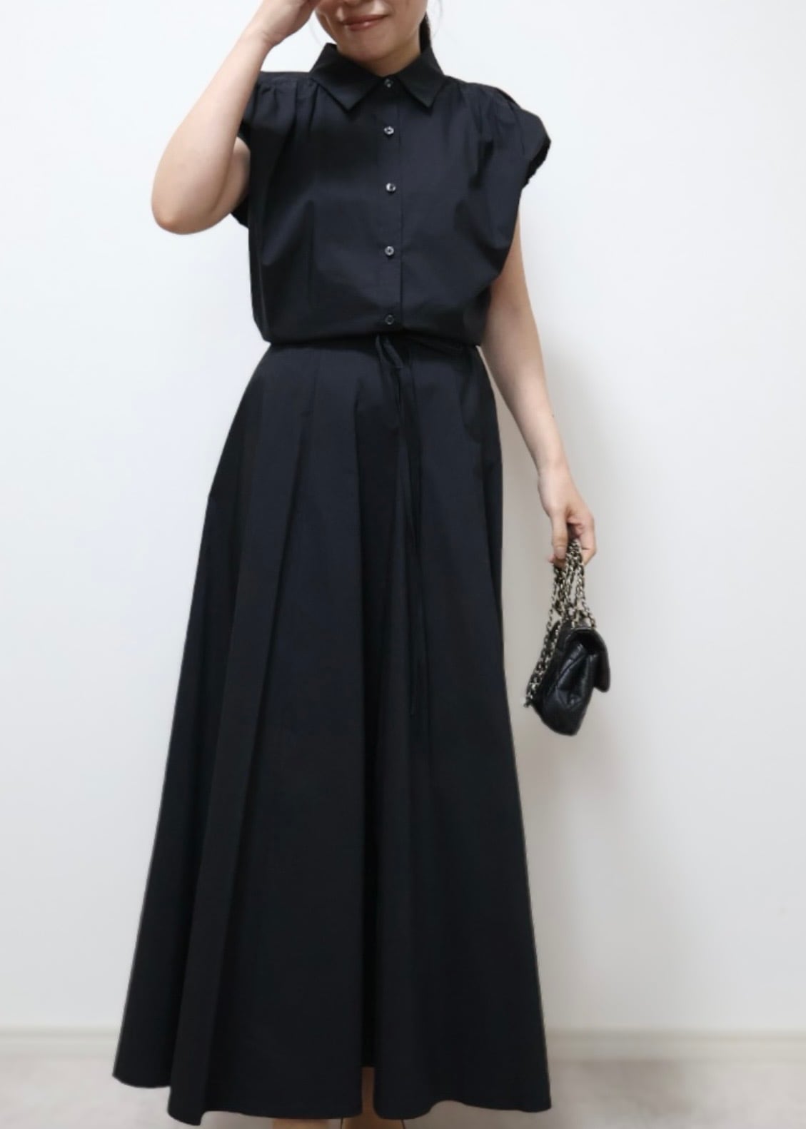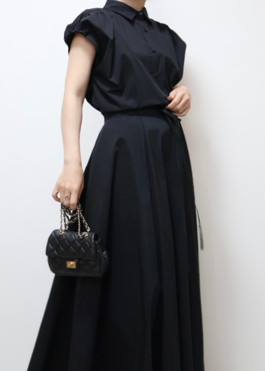 肩まわりをさりげなくカバーするフレンチスリーブが上品で涼しげな印象を演出してくれます。