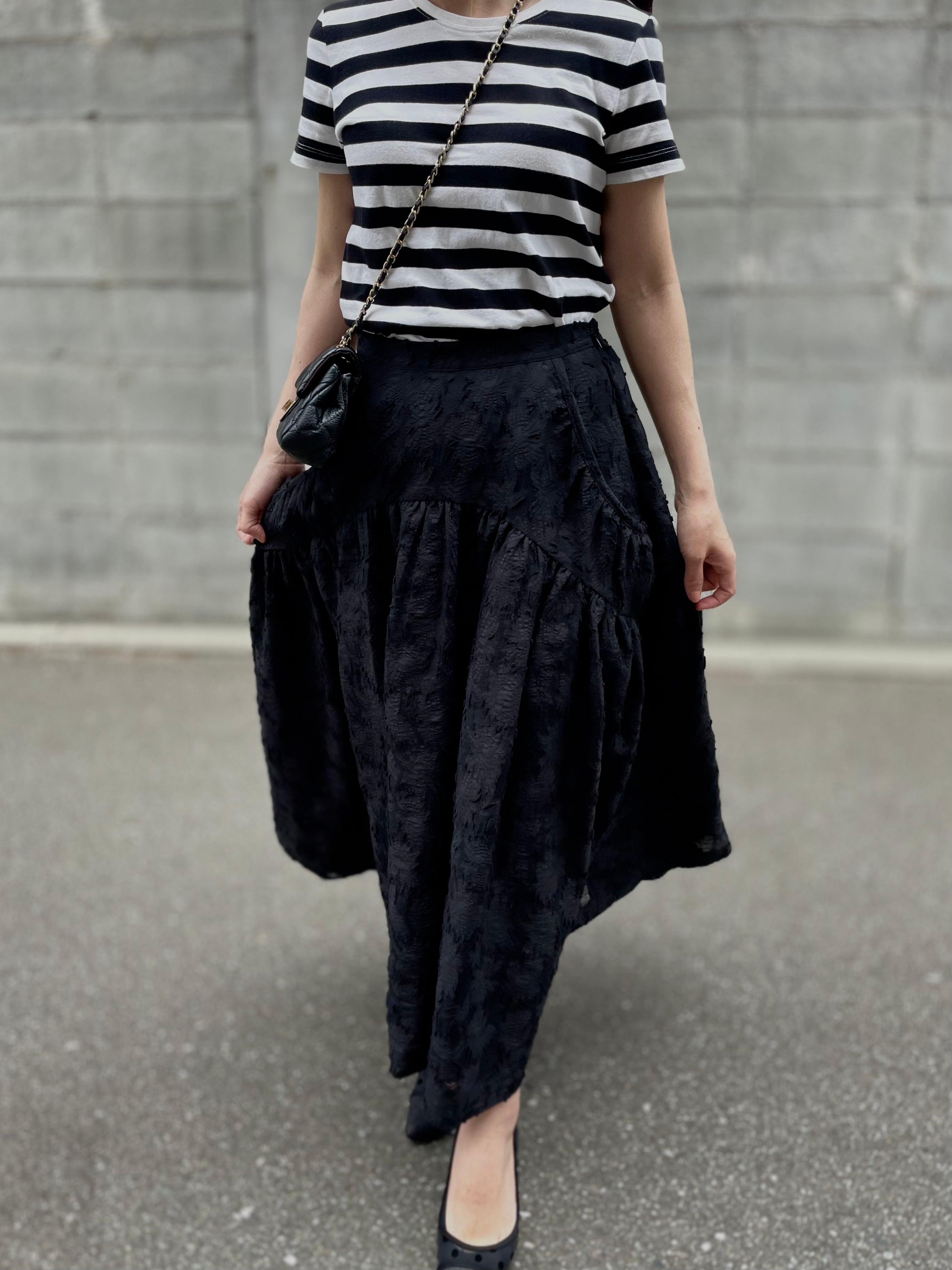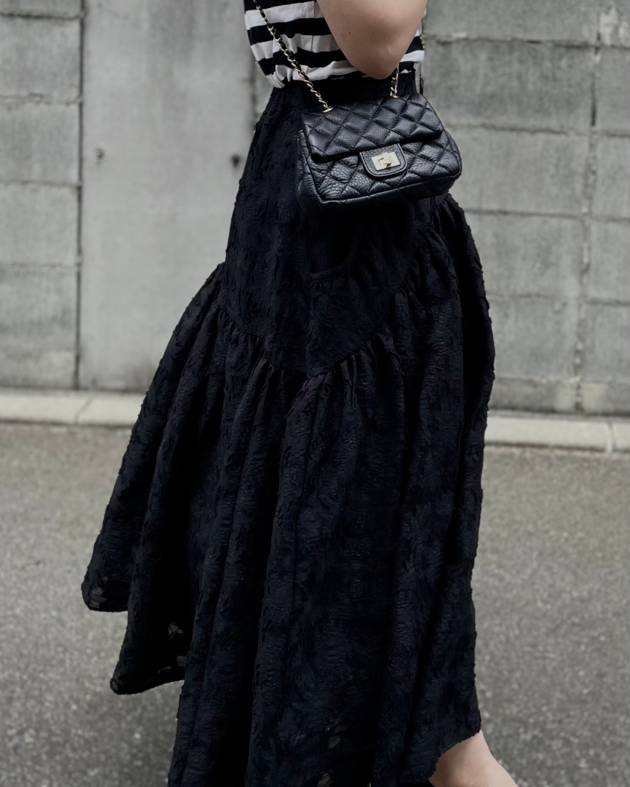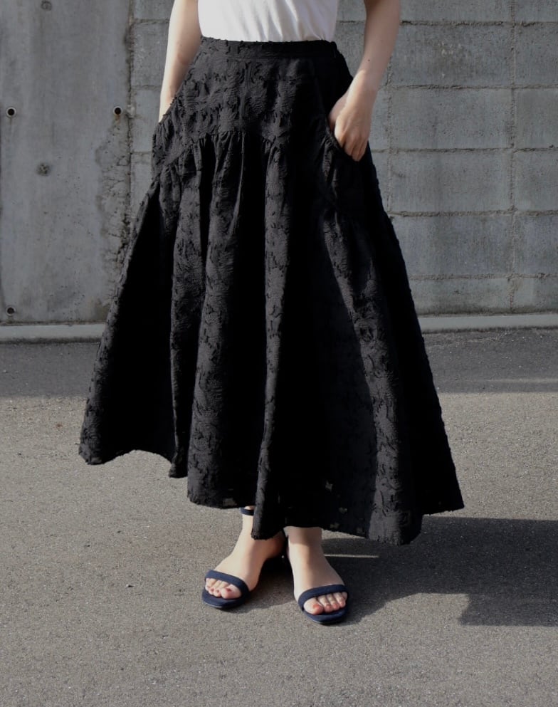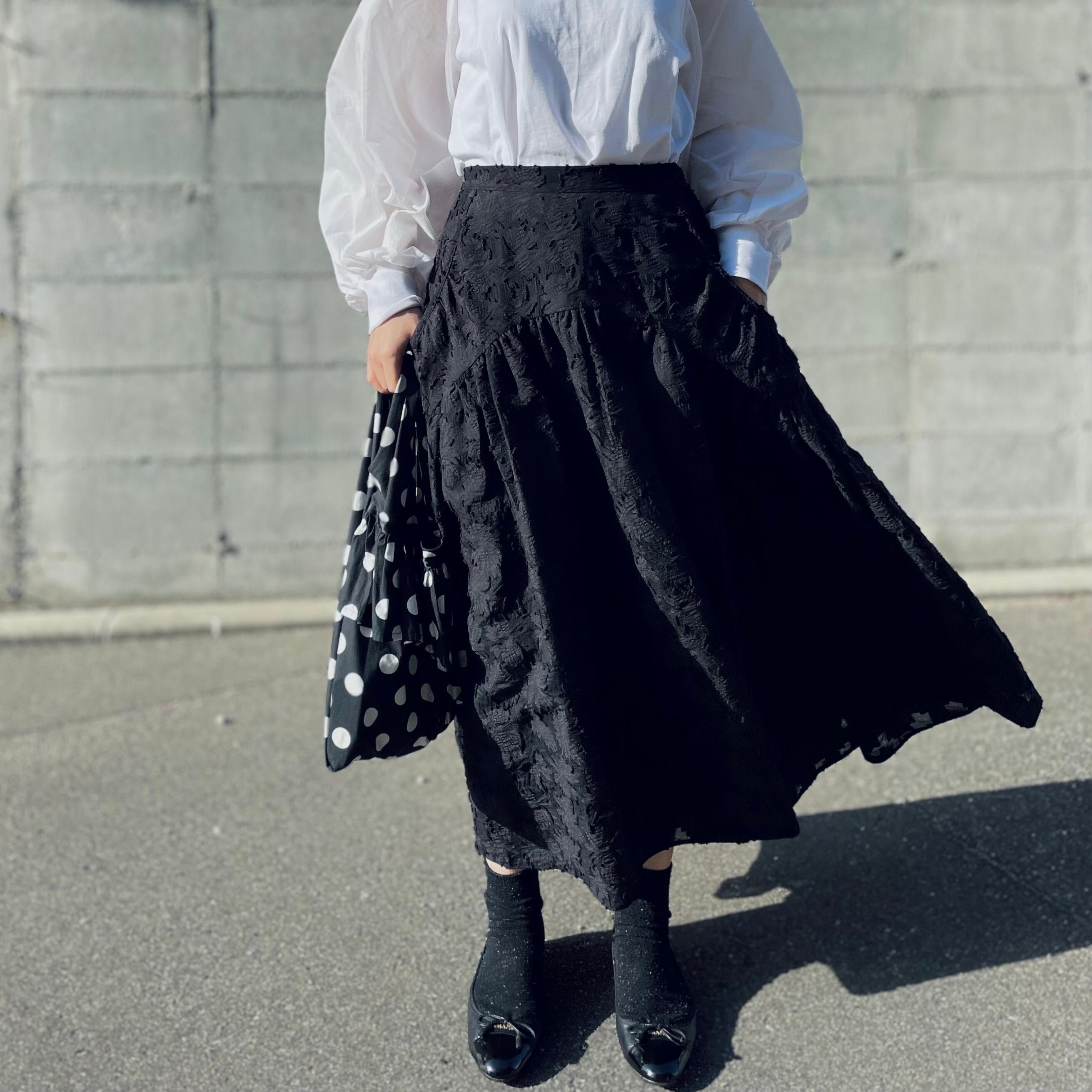 時間をかけて丁寧に作られたこのスカートは、一枚で存在感があり、おしゃれ上級者のアイテムとしてオススメです。